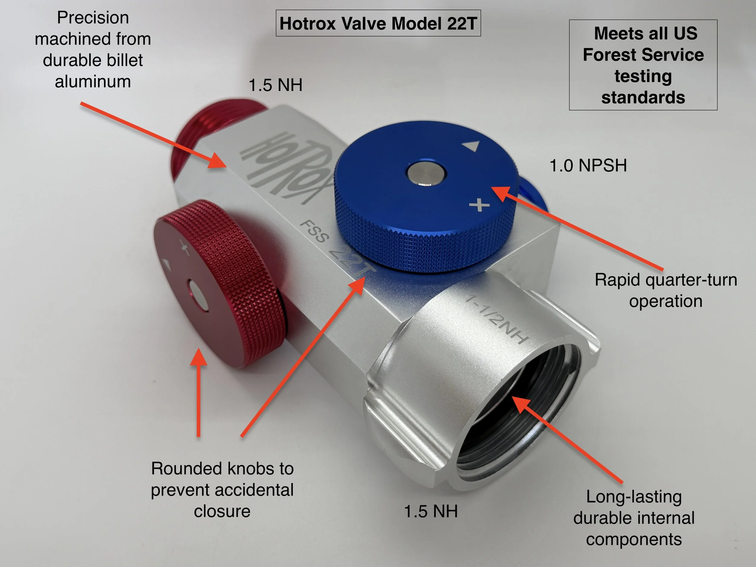 The HotRox Valve is a very simple patented design created by Firefighters that features an in-line 1 1/2” ball valve with an integrated 1” lateral. The valve is designed to incorporate into any Wildland Hosepack using 1 1/2” hose as the main firefighting line or as the trunk line. Design profile allows the HotRox to take the place of any in-line tee or gated wye with enhanced dual purpose functionality.